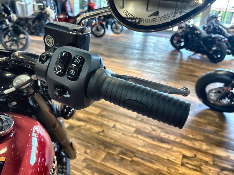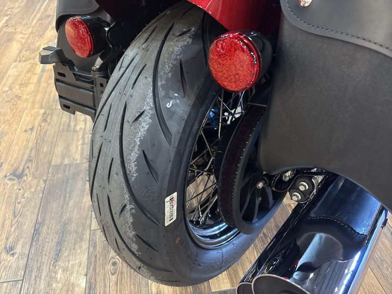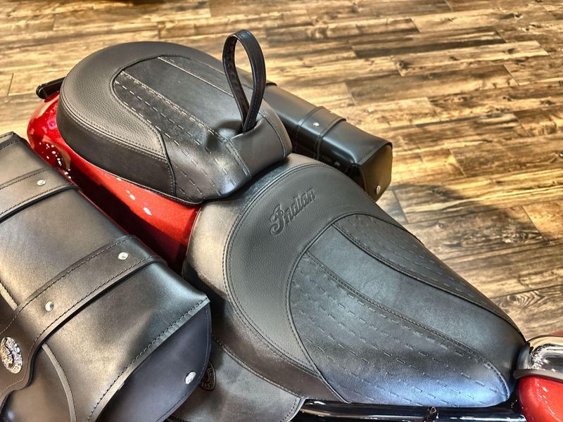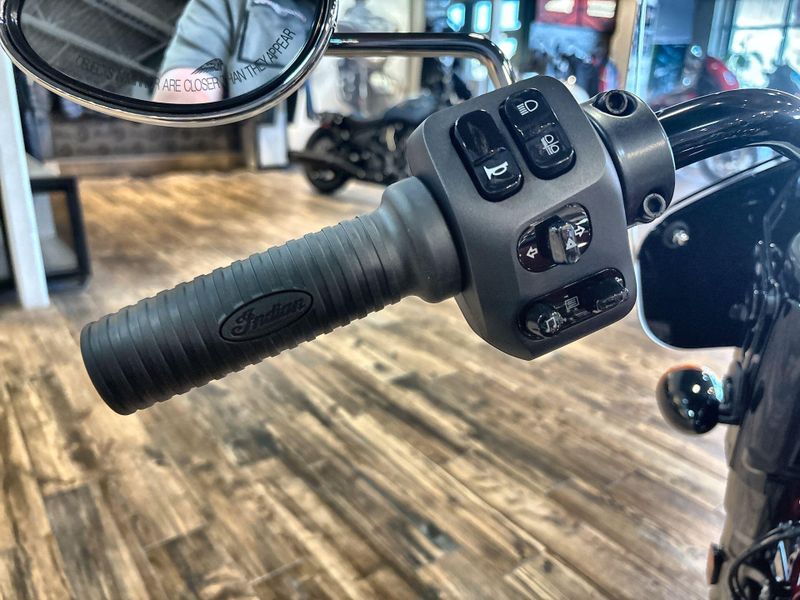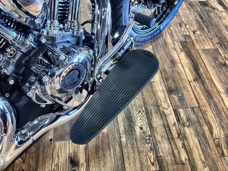 • PREMIUM FINISHES: Premium blacked out or chrome finishes, fork covers, wire wheels, and large headlight nacelle, and iconic Indian Motorcycle script badging on the tank, commanding attention at every corner.