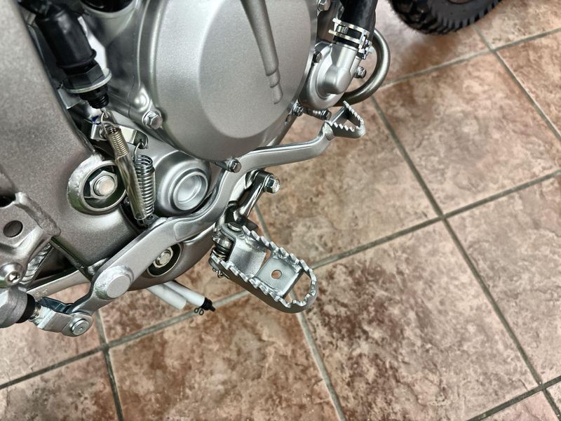 • Front Brakes: Single 250mm petal disc with a dual-piston caliper