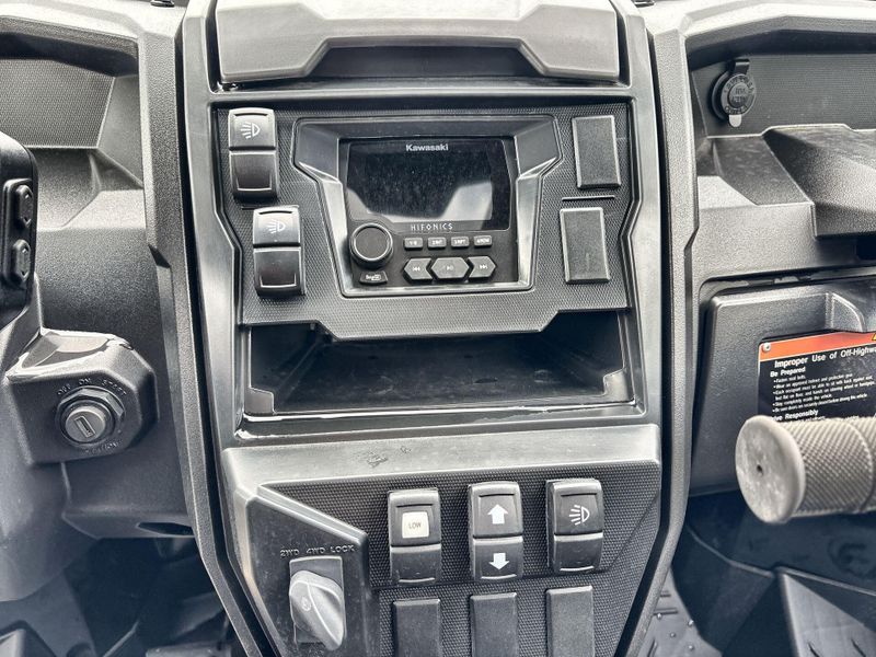 • Additional Features: LED light bars (38-in mounted to front of roof, 8-in mounted to front bumper, (2) 8-in mounted to rear of roof), Front Bumper, Rear Bumper, Steel skid-plates w/ drain holes, KQR™ Premium Roof, Hifonics® Audio System, WARN® VRX 45 Powersport Winch