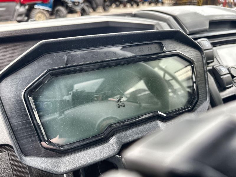 • Instruments: Multi-function digital meter with bar-style tachometer (2 display options), digital speedometer, bar-style fuel gauge, gear indicator (L, H, N, R), Power Mode, driving mode (2WD/4WD/4WD+Diff Lock) indicator, Economical Riding Indicator, clock, odometer, dual trip meters, hour meter, water temperature, digital battery gauge, bar-style CTV temperature, seatbelt warning lamp, oil warning lamp, engine check lamp, water temperature warning lamp, neutral indicator lamp, reverse indicator lamp, parking indicator lamp, EPS warning lamp, and CVT belt warning lamp